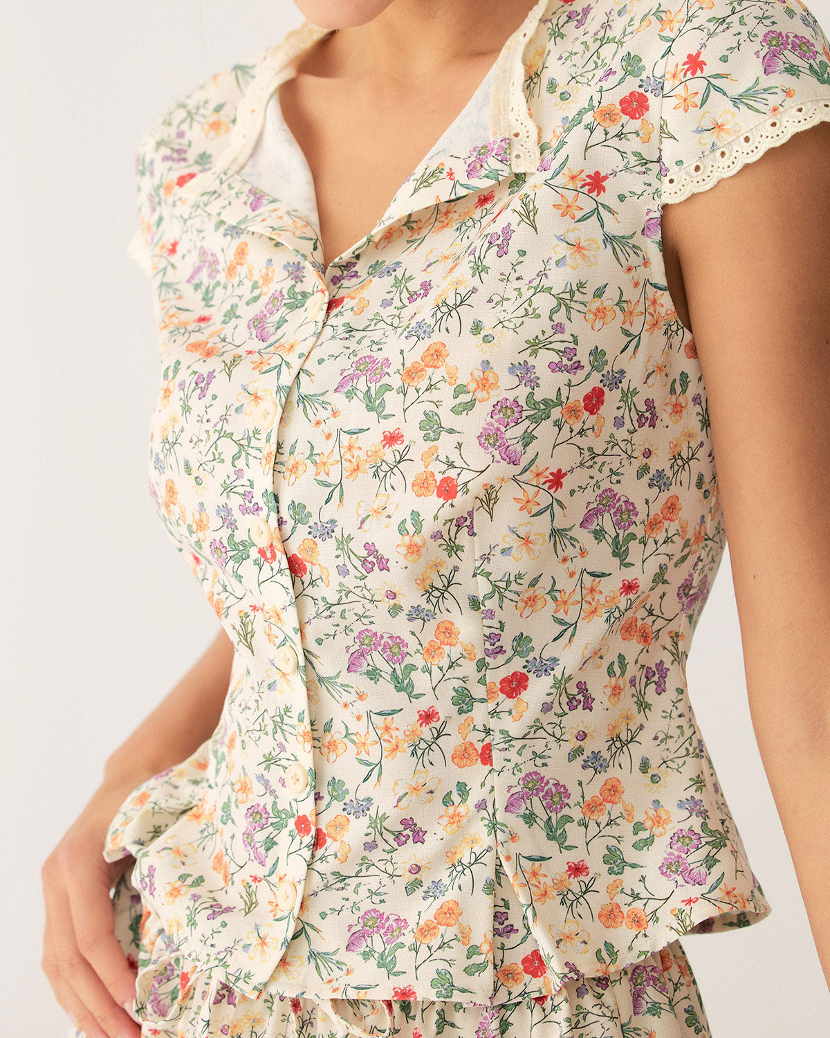 Belltoile™ Yuvarlak Yaka Çiçek Düğmeli Bluz