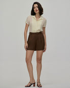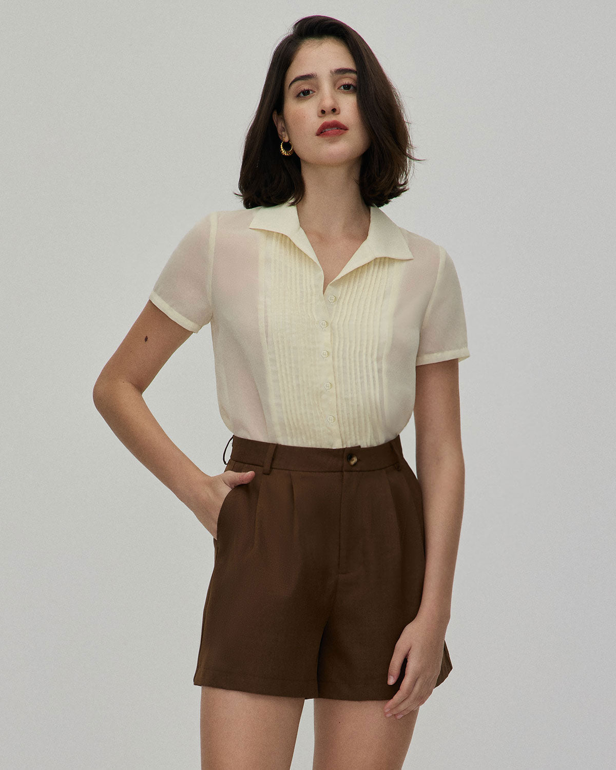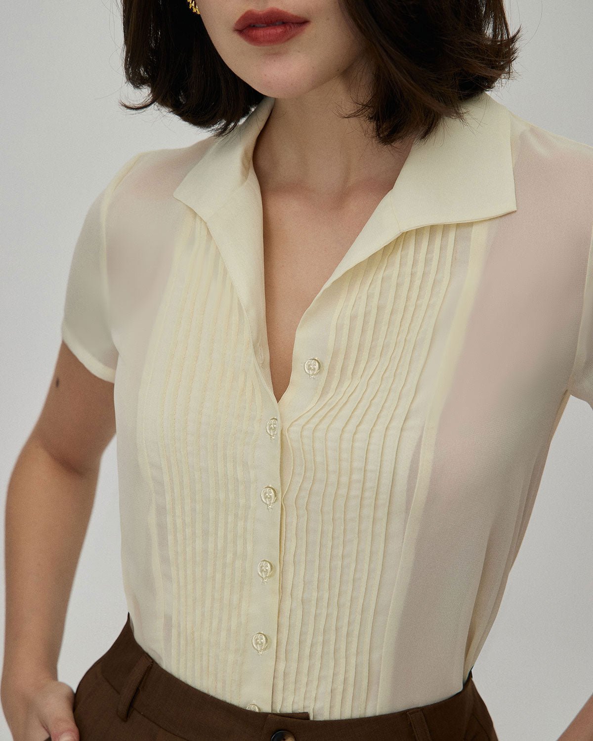 Belltoile™ Bej V Yaka Pileli Şifon Bluz