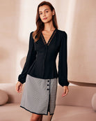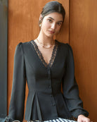Belltoile Siyah V Yaka Dantelli Düğmeli Bluz