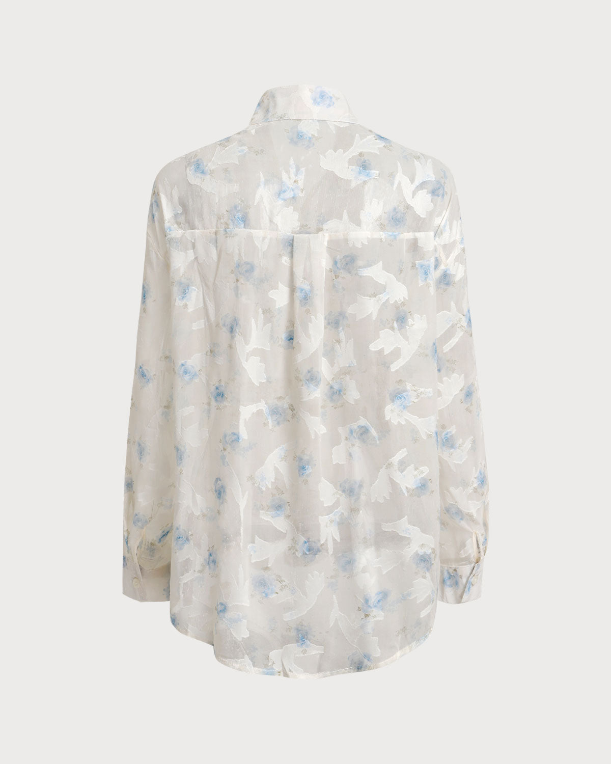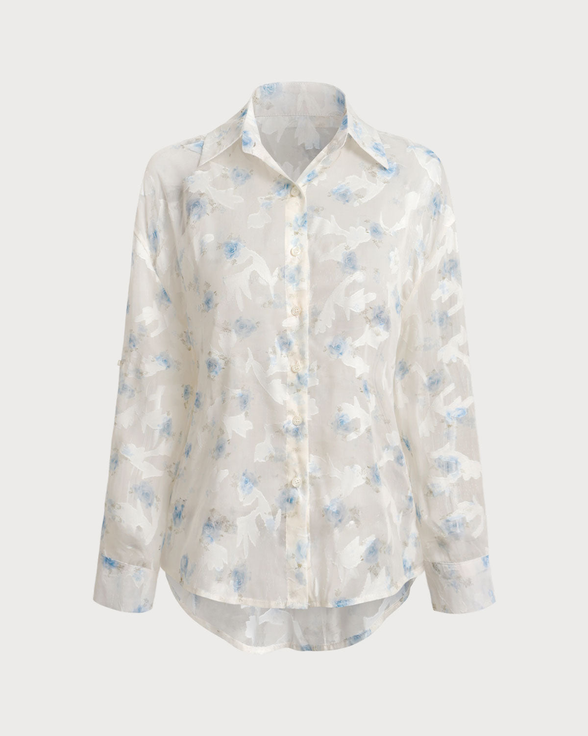 Belltoile™ Beyaz Çiçek Dokulu Düğmeli Gömlek
