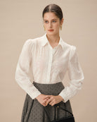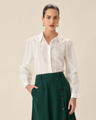 Belltoile™ Beyaz Jakarlı Düğmeli Gömlek