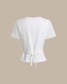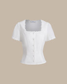 Beyaz Kare Yaka Düğmeli Dantel Bluz