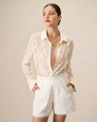 Belltoile™ Kadın Kayısı Jakarlı Uzun Kollu Gömlek