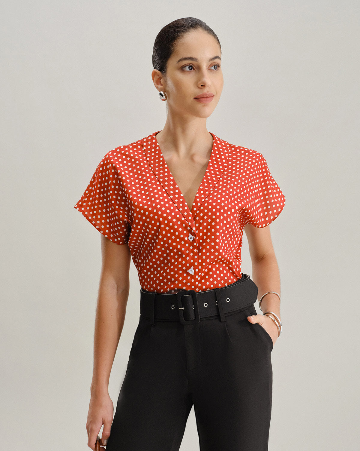 Siyah Puantiyeli Kısa Kollu Gömlek