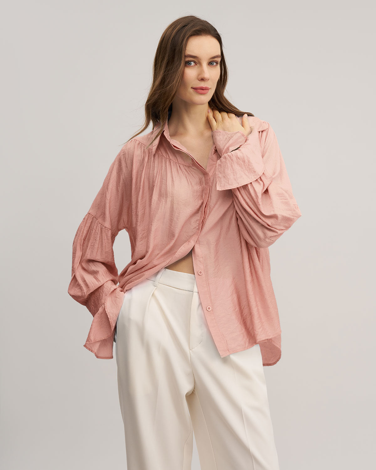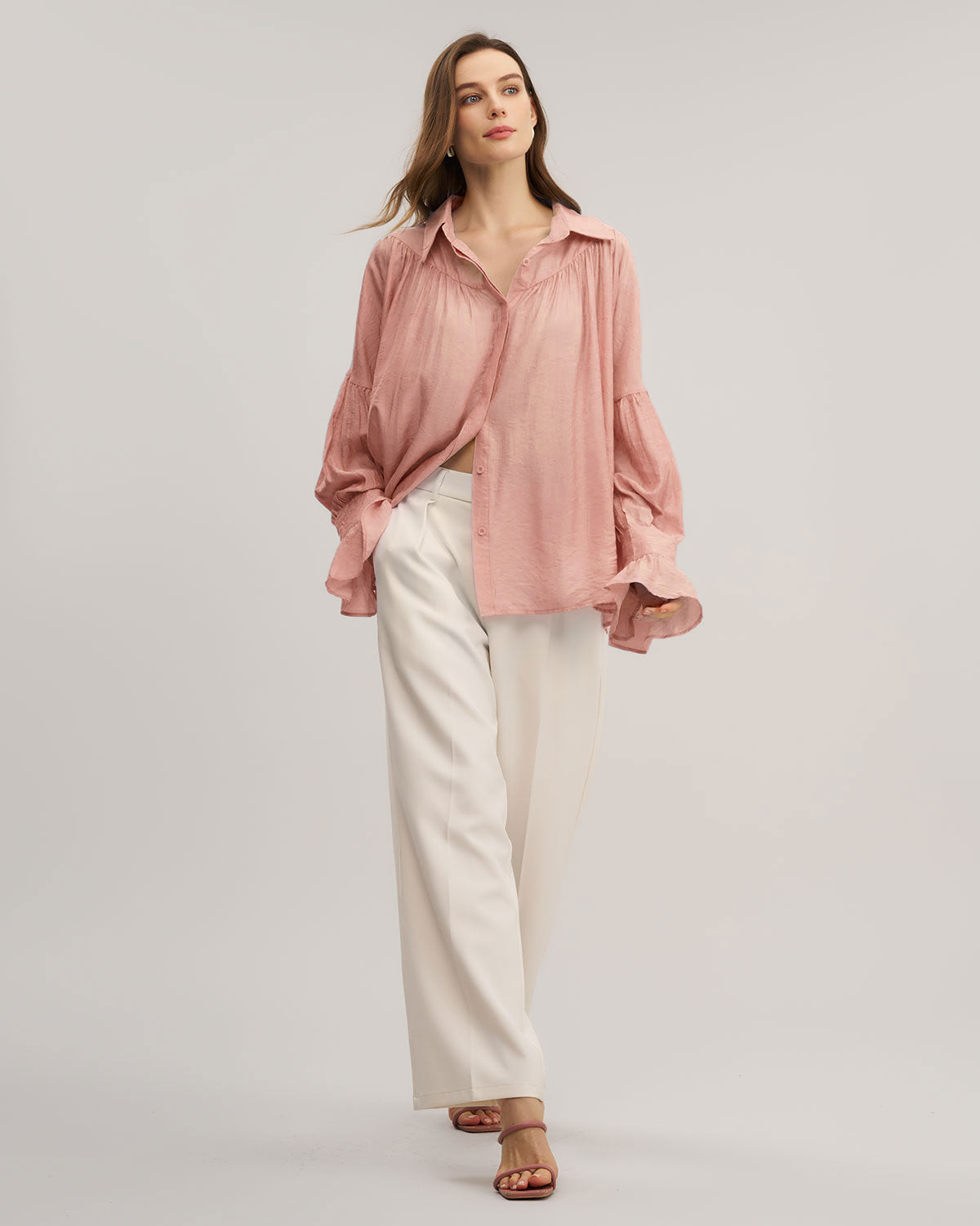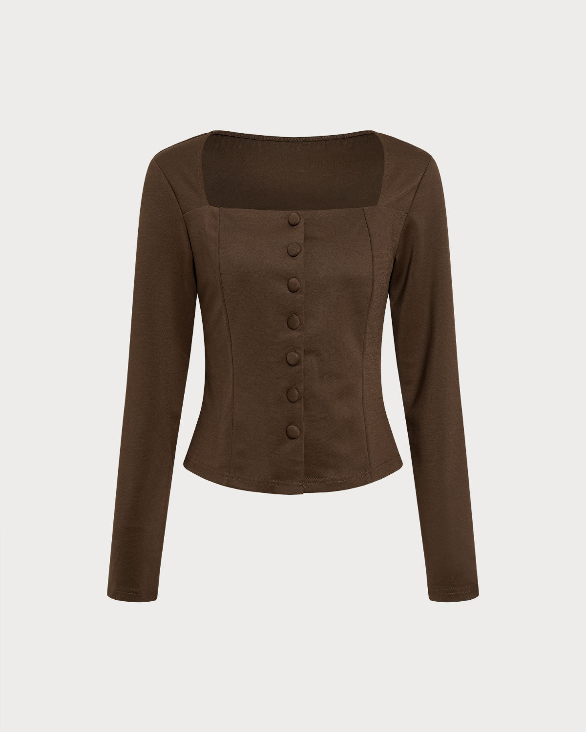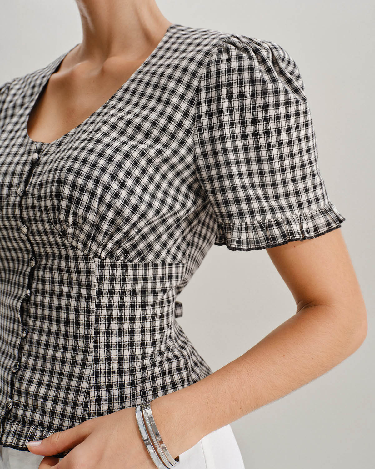 Kahverengi Ekose Büzgülü Şair Kollu Bluz