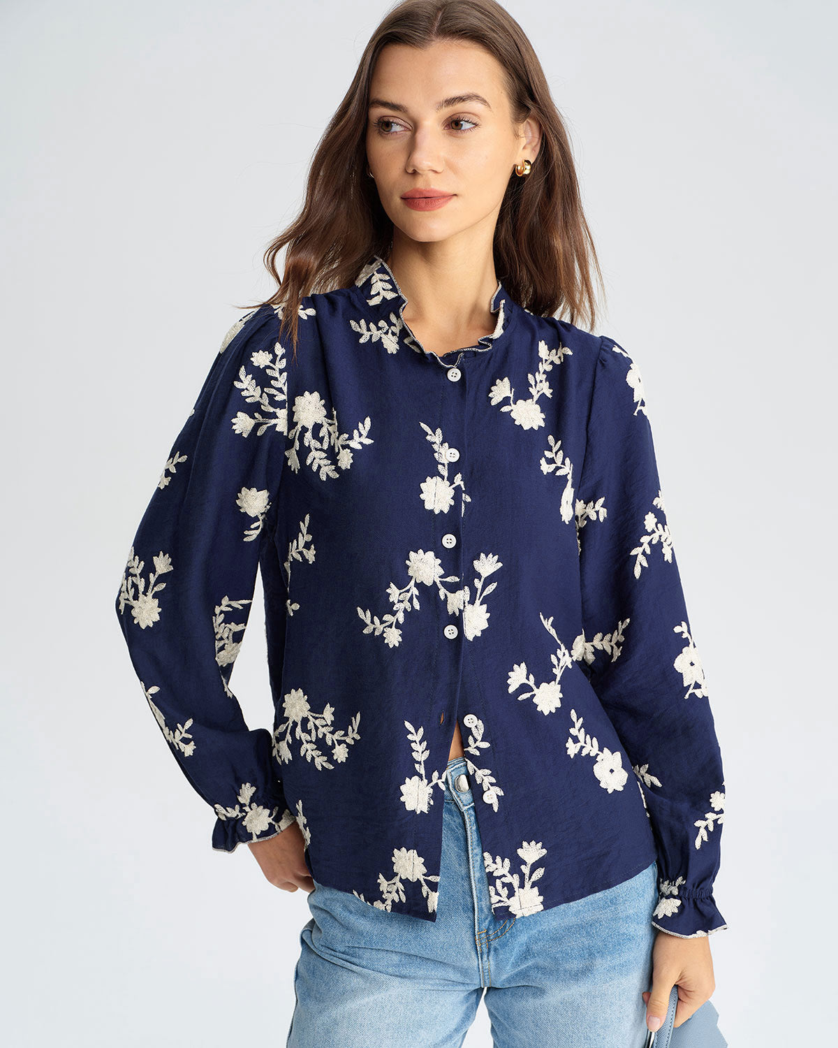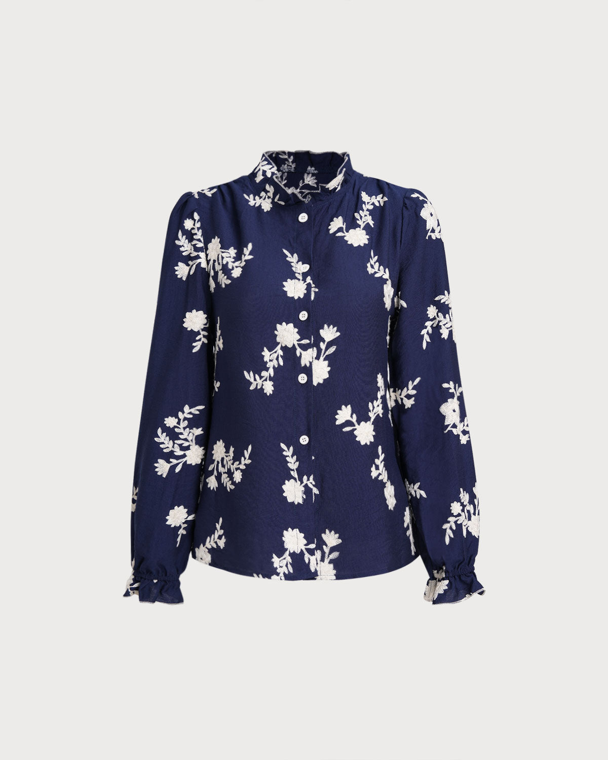Sarı Çiçekli Volanlı Çan Kollu Gömlek