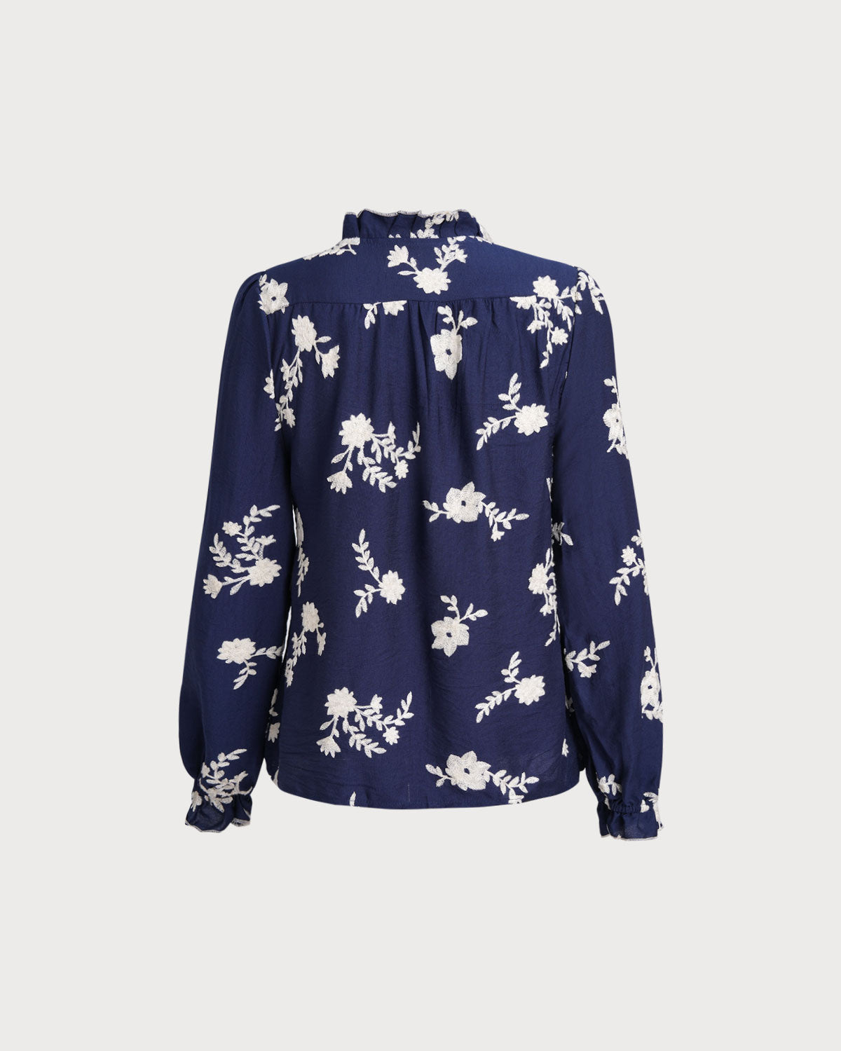 Lacivert Yuvarlak Yakalı Kabarık Kollu Bluz