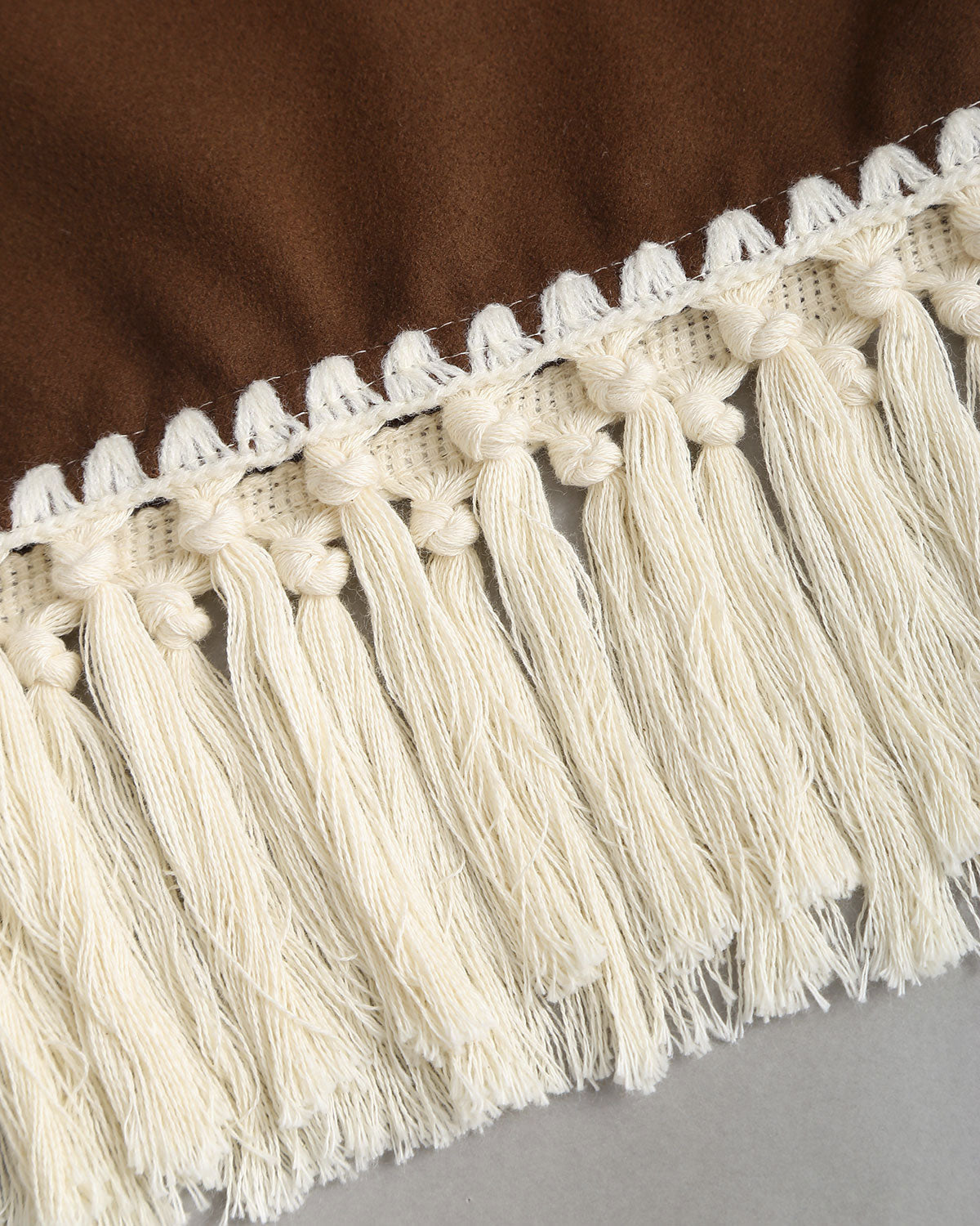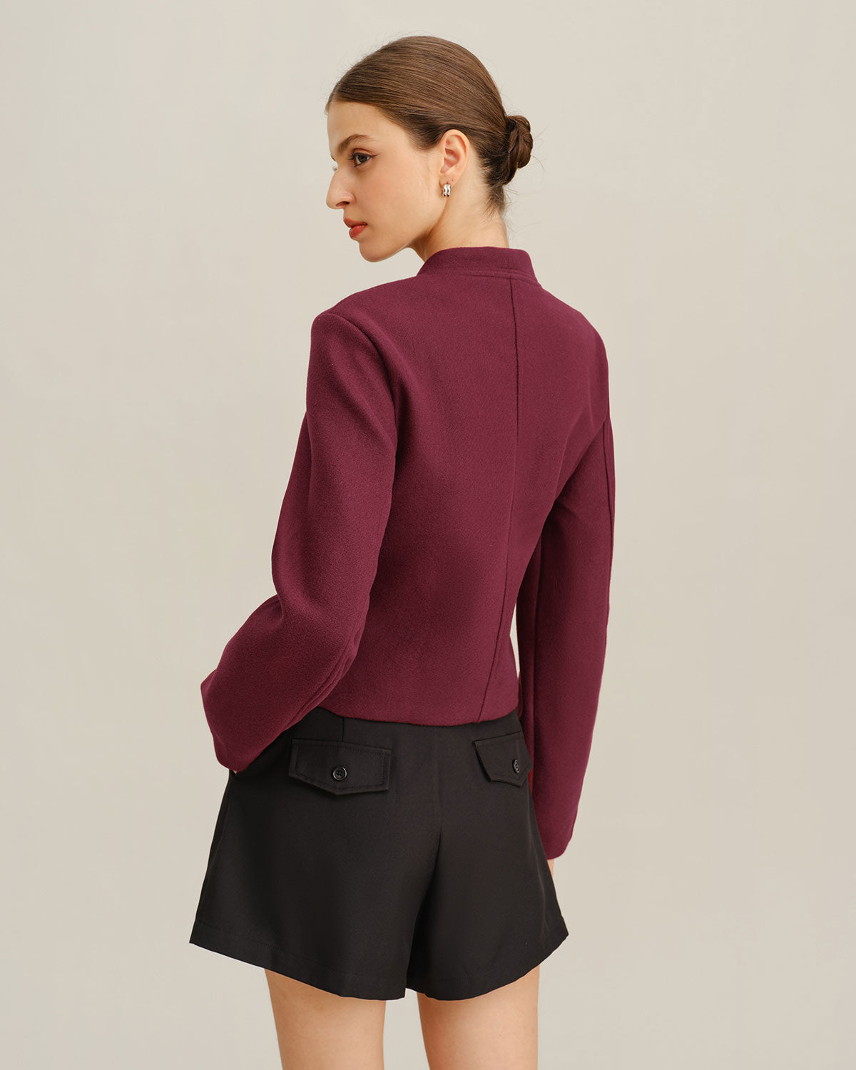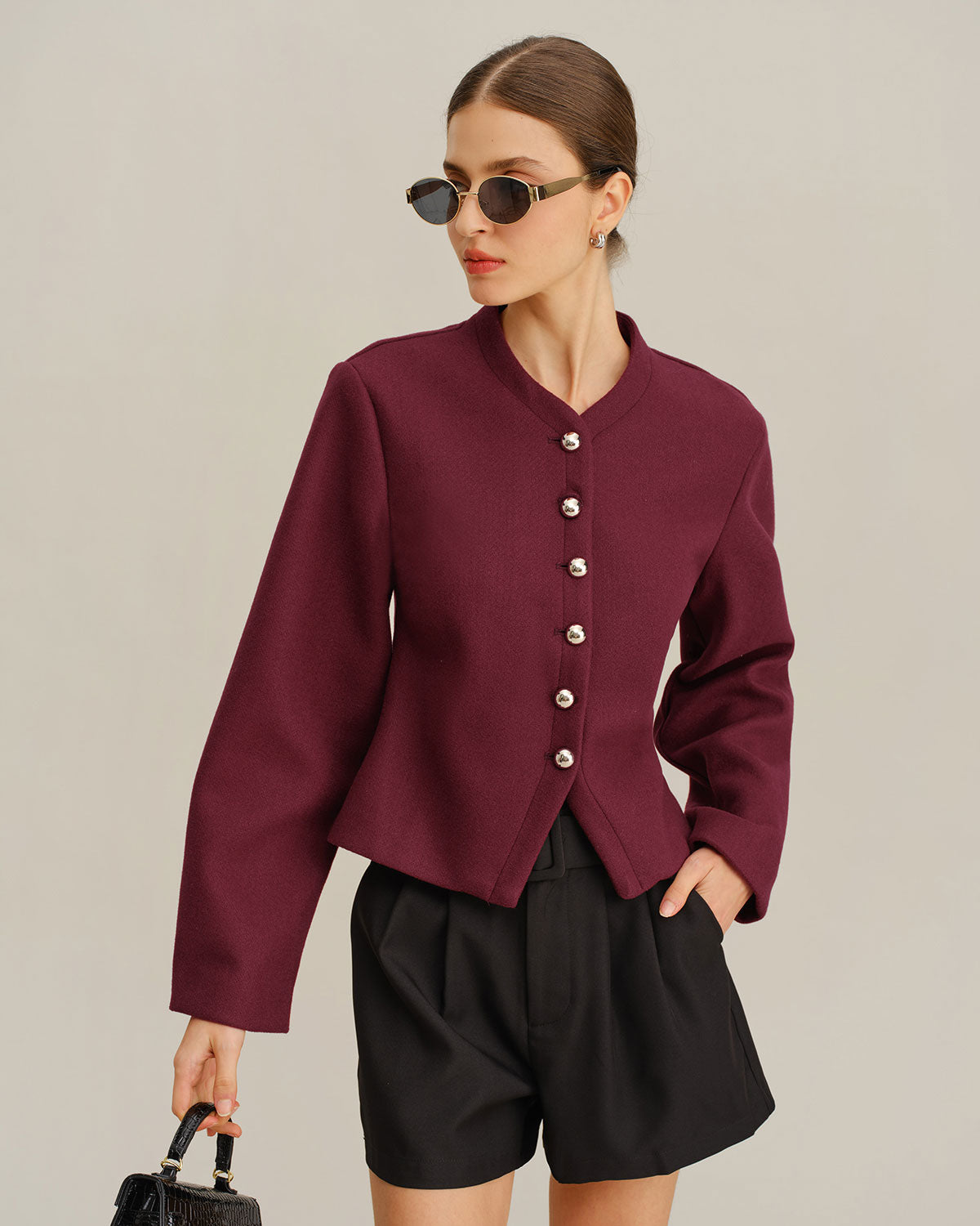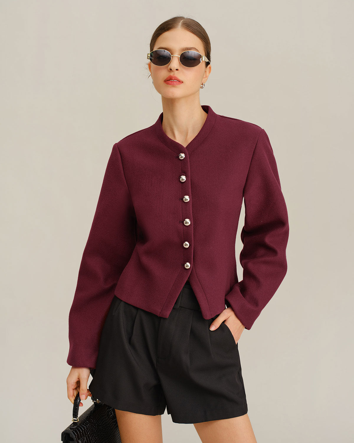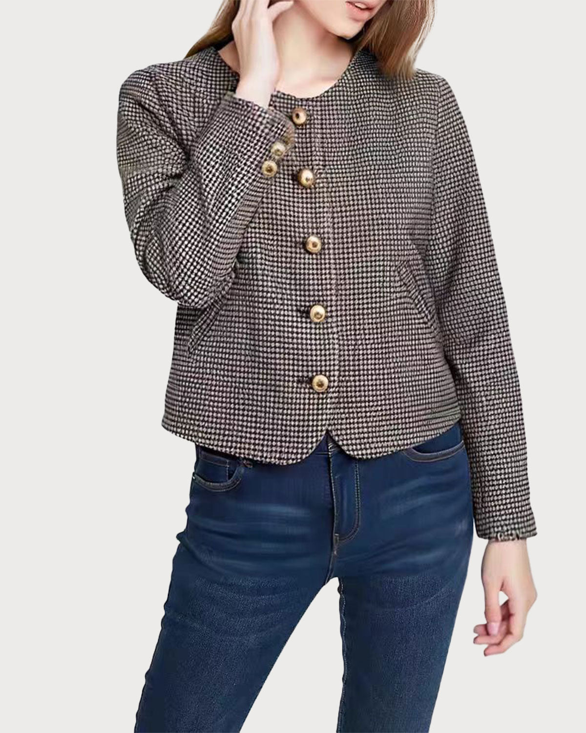 Kahverengi Ekose Düğmeli Kısa Kollu Ceket