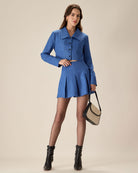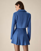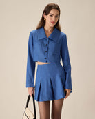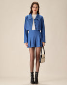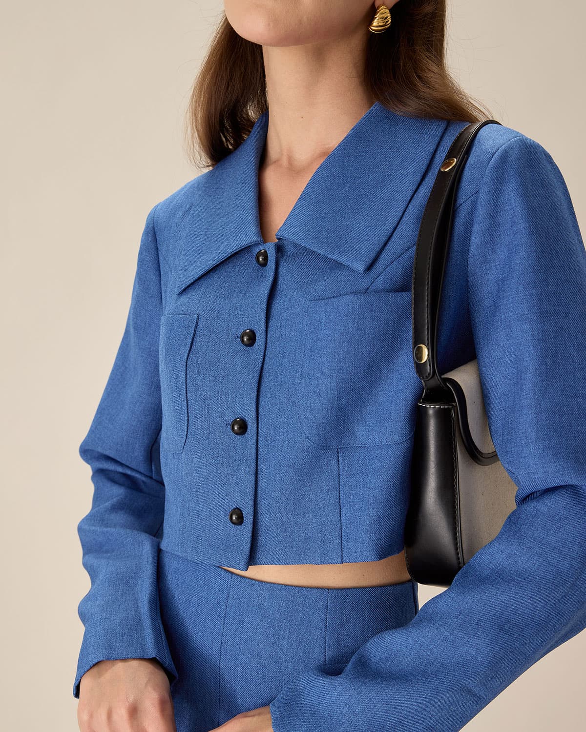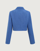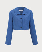 Belltoile™ Mavi Tek Sıra Düğmeli Cepli Crop Ceket
