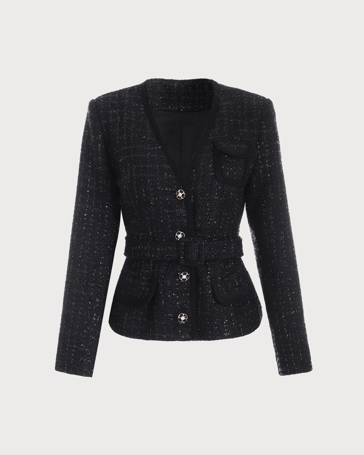 Belltoile™ V Yaka Tek Sıra Düğmeli Kuşaklı Ceket