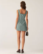 Belltoile Yeşil Ekose Kare Yaka Slip Mini Elbise