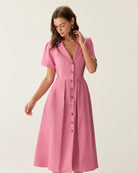 Belltoile Gül Kırmızı V Yaka Düğmeli Midi Elbise