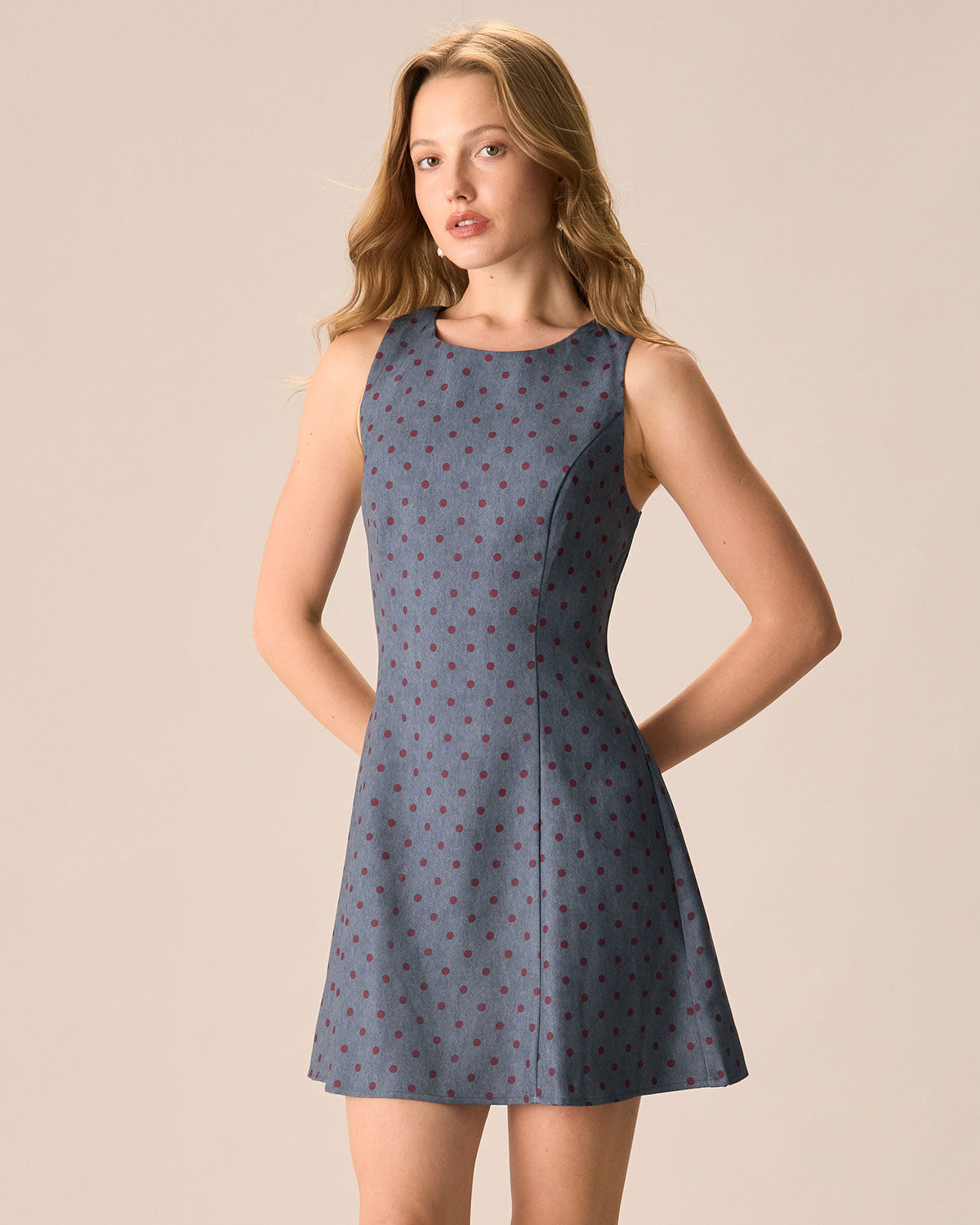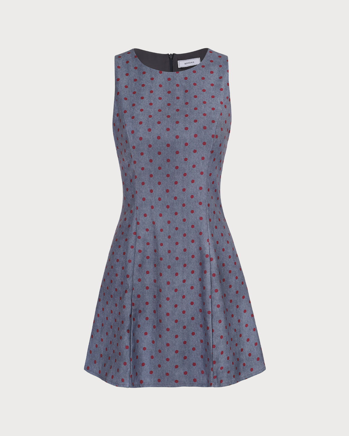 Belltoile Gri Yuvarlak Yaka Puantiyeli Mini Elbise