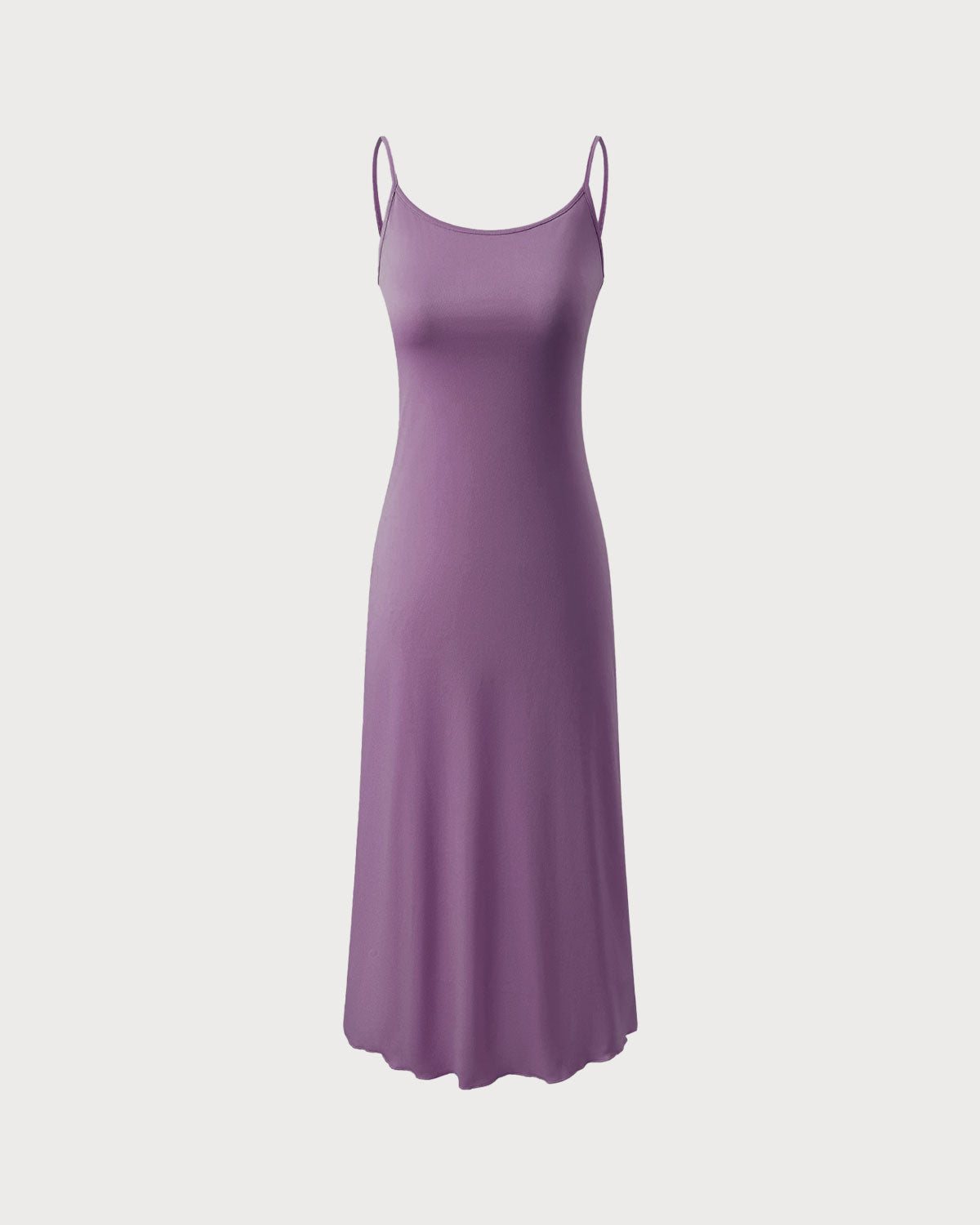 Kahverengi Şifon V Yaka Slip Uzun Elbise