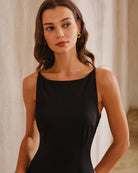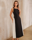 Siyah Kontrast Tekne Yaka A Kesim Uzun Elbise