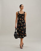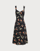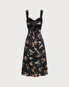 Siyah Çiçekli Büzgülü Slip Uzun Elbise