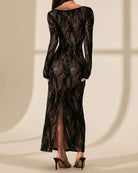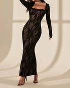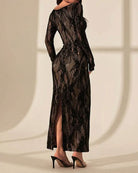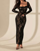 Siyah Dantelli Şeffaf Vücuda Oturan Uzun Elbise
