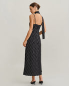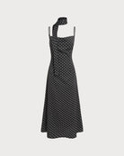 Siyah Puantiyeli Kapüşonlu Yaka Uzun Elbise