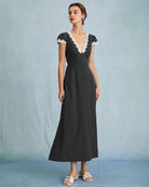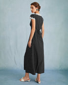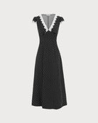 Siyah Puantiyeli Dantel Kenarlı Uzun Elbise