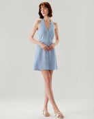 Belltoile™ Mavi Düğme Cepli Boyundan Bağlamalı Mini Elbise