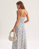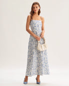 Nazik çiçek deseni ve uçuşan silüetiyle bu elbise, yaz akşamları, plaj günleri veya günlük etkinlikler için mükemmel bir zarif görünüm sunar. Slip tasarımı ve ayarlanabilir askıları rahat ve hoş bir uyum sağlarken, maksi boyu sofistike bir dokunuş katar.