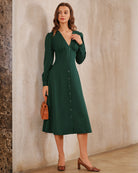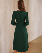 Yeşil Büzgülü Düğmeli Midi Elbise