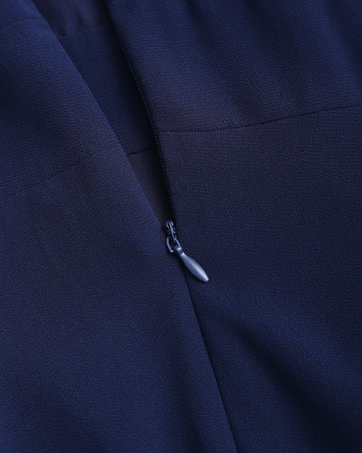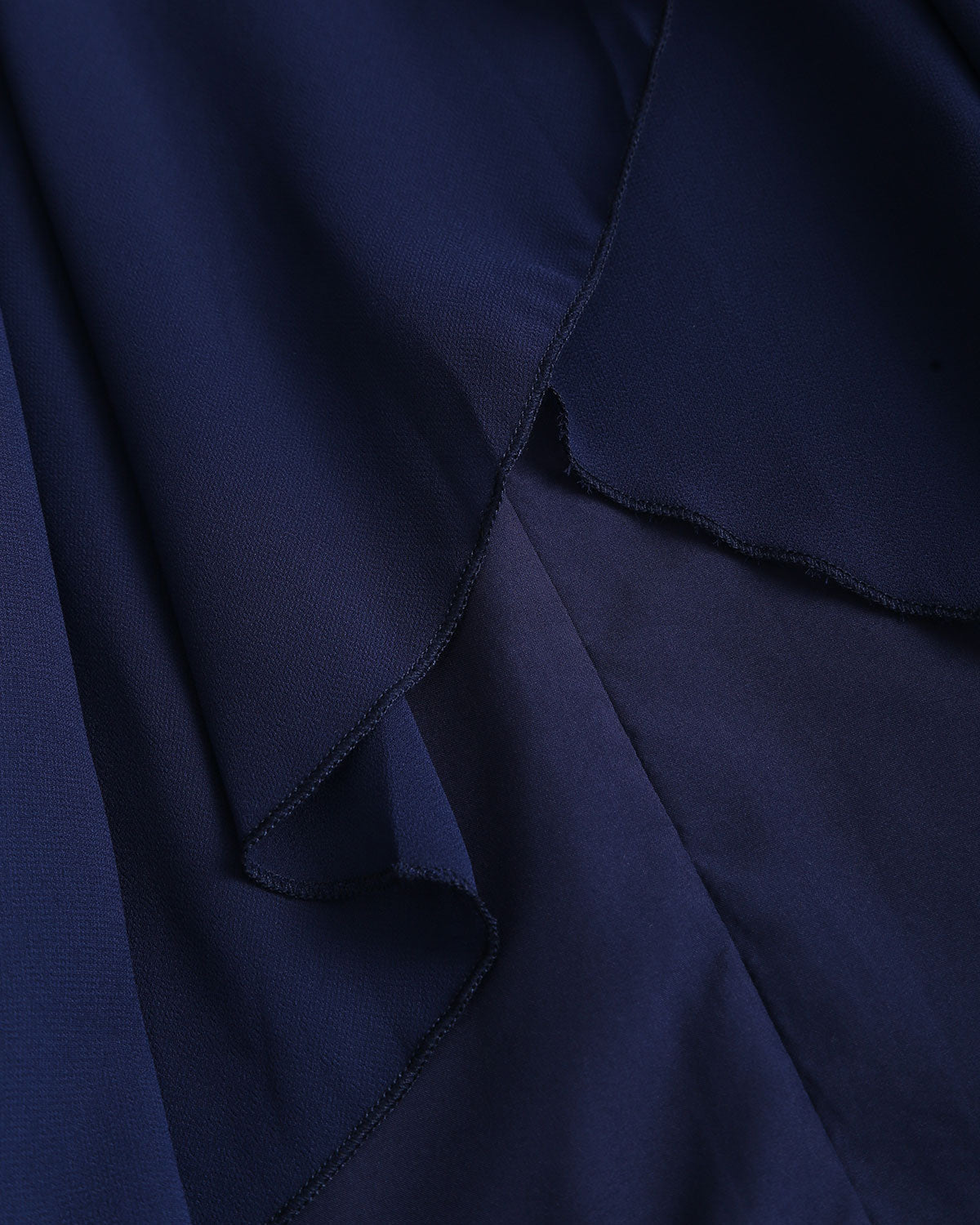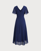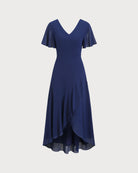 Lacivert V Yaka A Kesim Volanlı Uzun Elbise