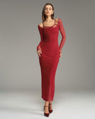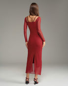 Kırmızı Transparan Vücuda Oturan Uzun Elbise