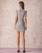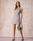 Belltoile™ Gri Kare Yaka Kap Kol Mini Elbise
