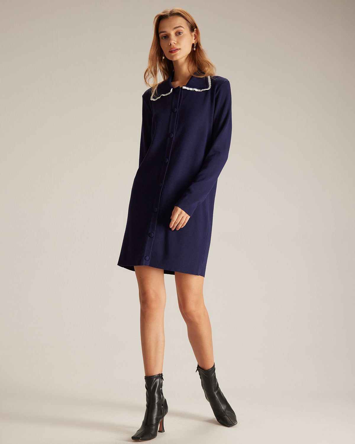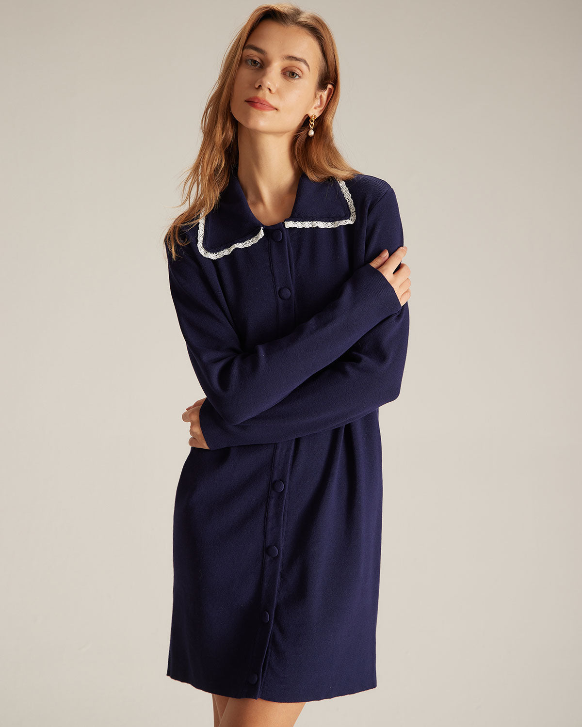 Belltoile™ Lacivert Peter Pan Yaka Kazak Mini Elbise