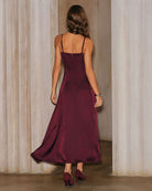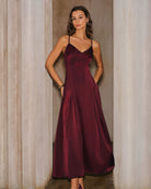 Şarap Kırmızısı Saten A Kesim Uzun Elbise