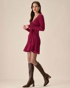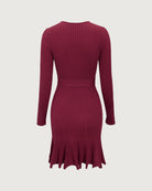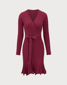 Belltoile™ Şarap Kırmızısı Anvelop Triko Mini Elbise