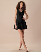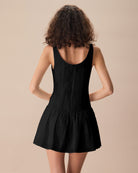 Belltoile Kadın Siyah Kayık Yaka Jakarlı Pamuklu Mini Elbise