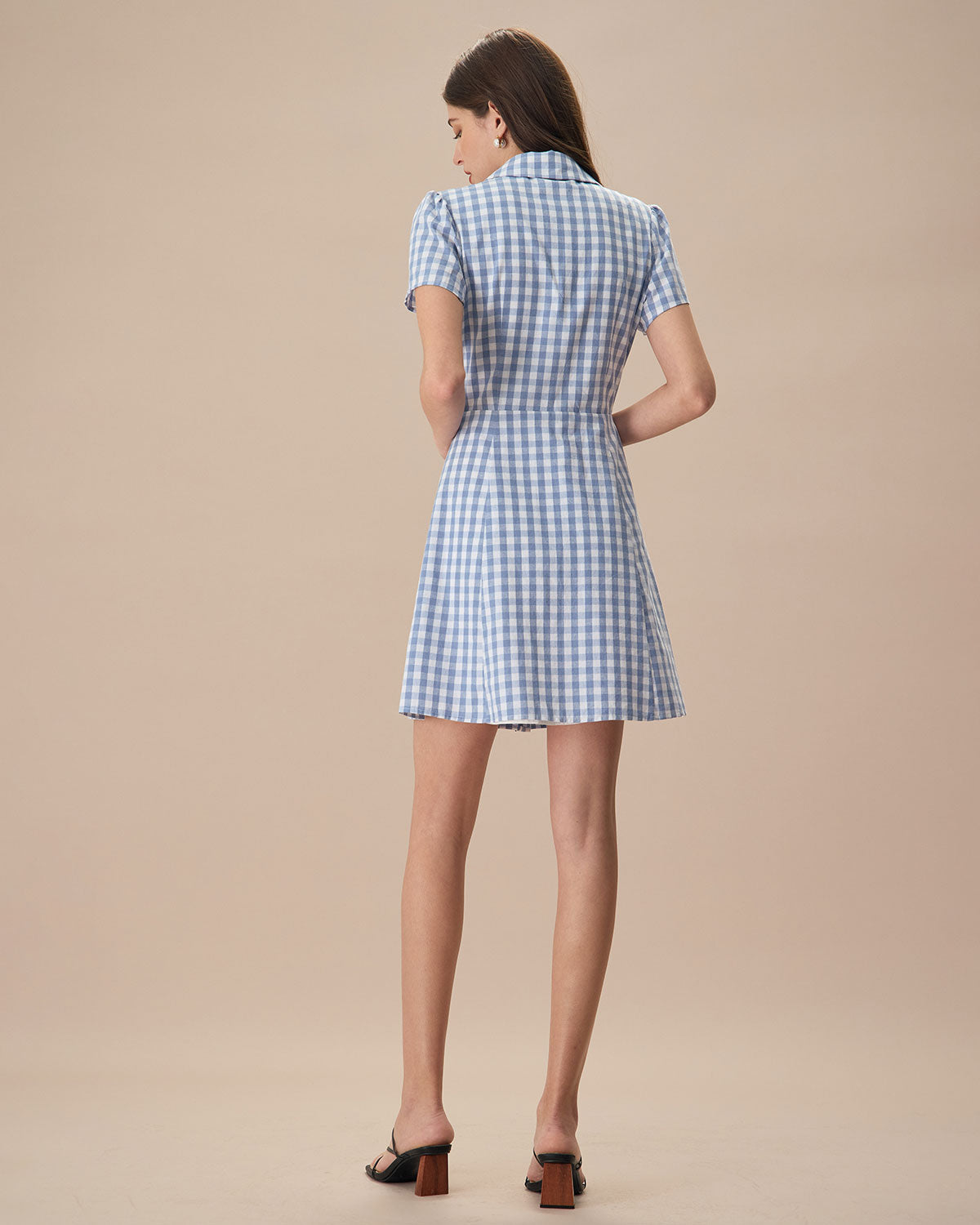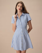 Belltoile Kadın Mavi Ekose Yaka Pamuklu Mini Elbise