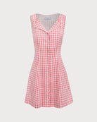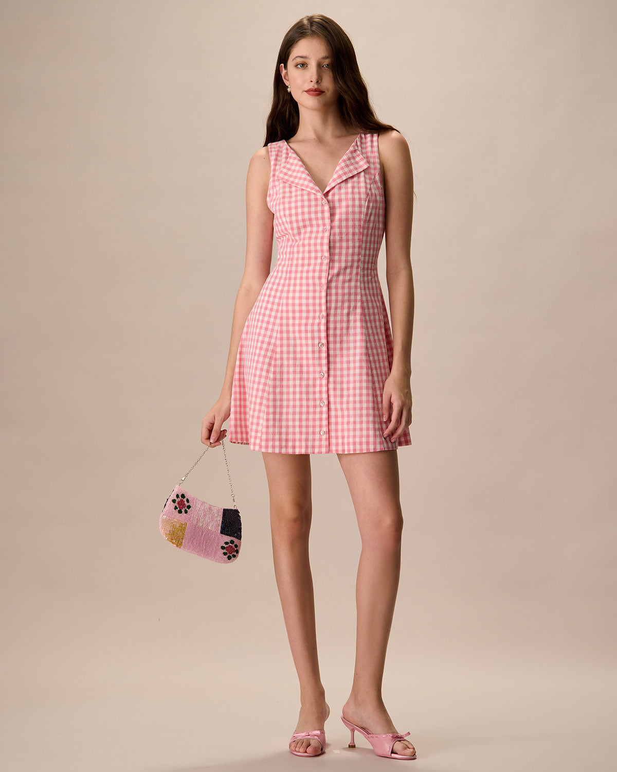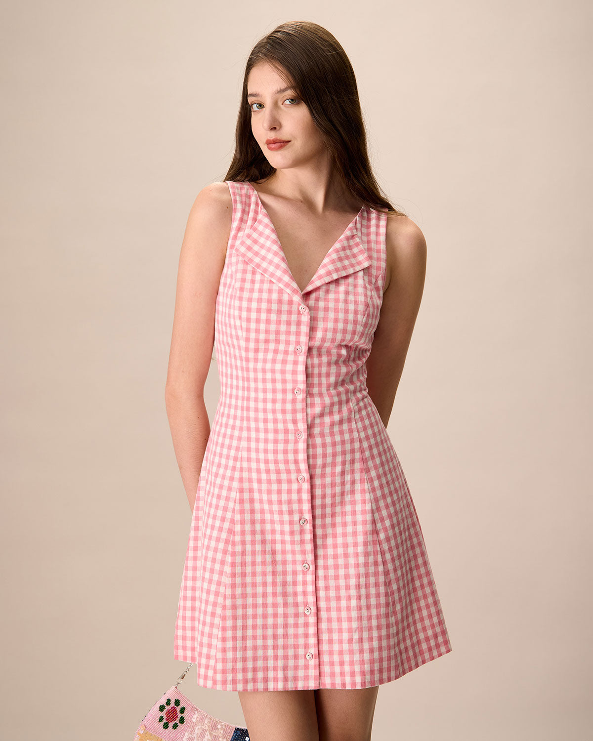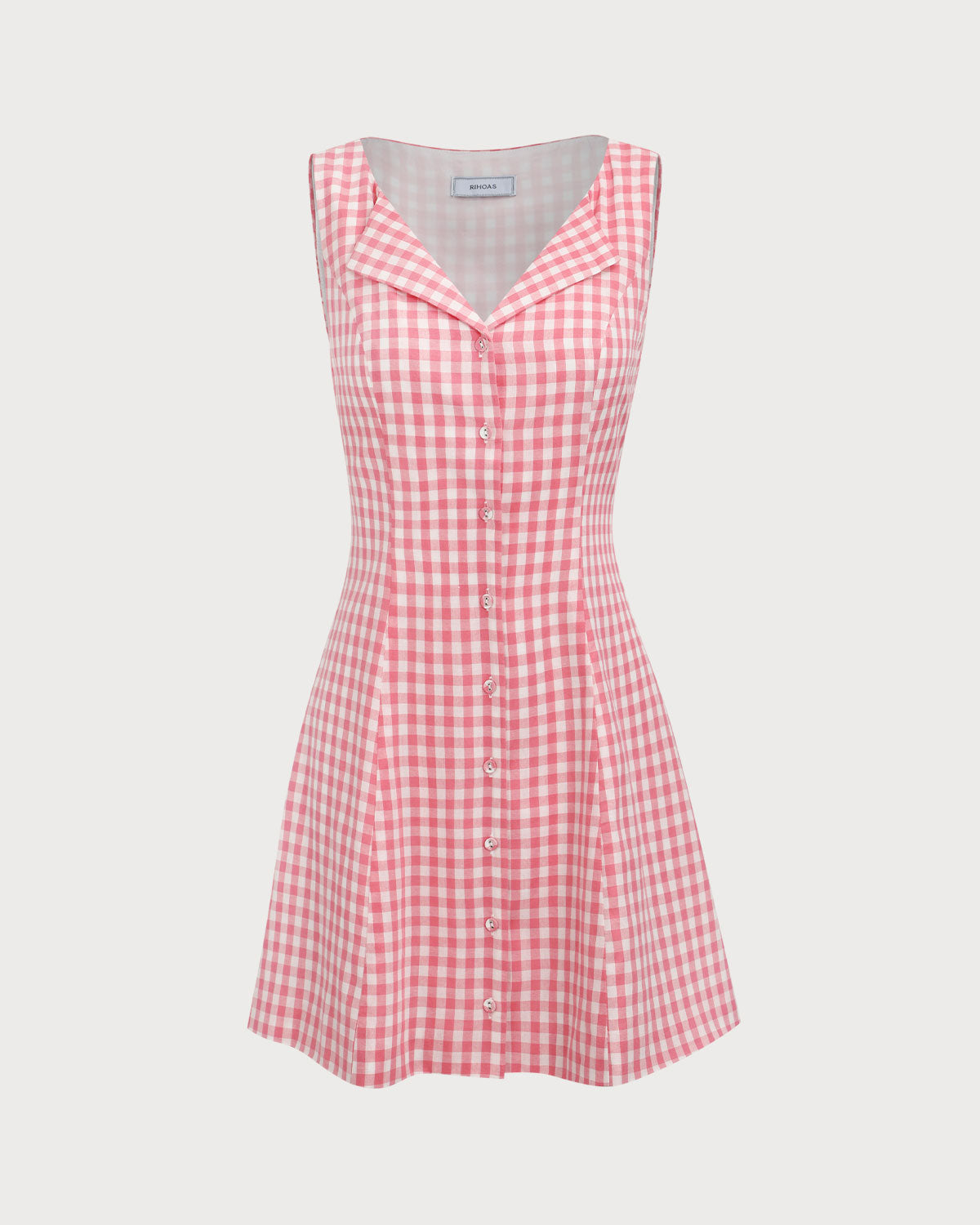 Belltoile Kadın Pembe V Yaka Ekose Pamuklu Mini Elbise