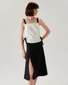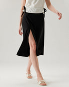 Belltoile™ Siyah A Kesim Yırtmaçlı Midi Etek