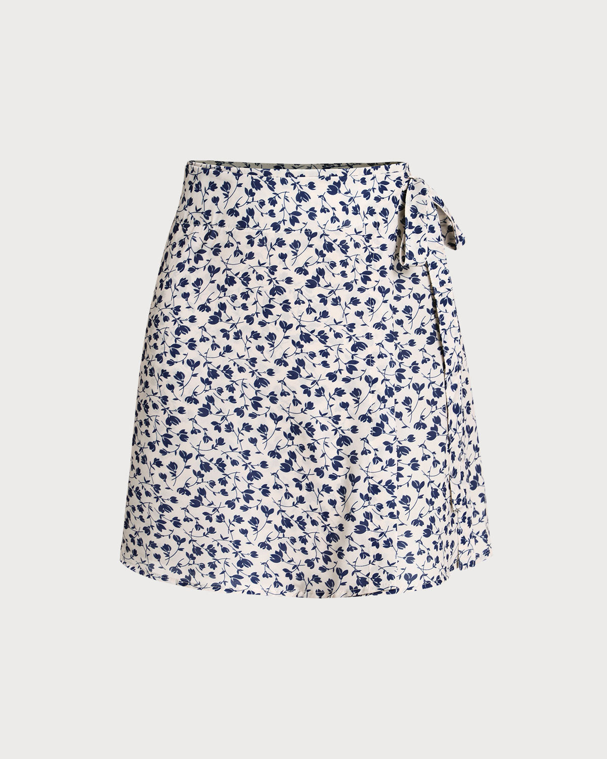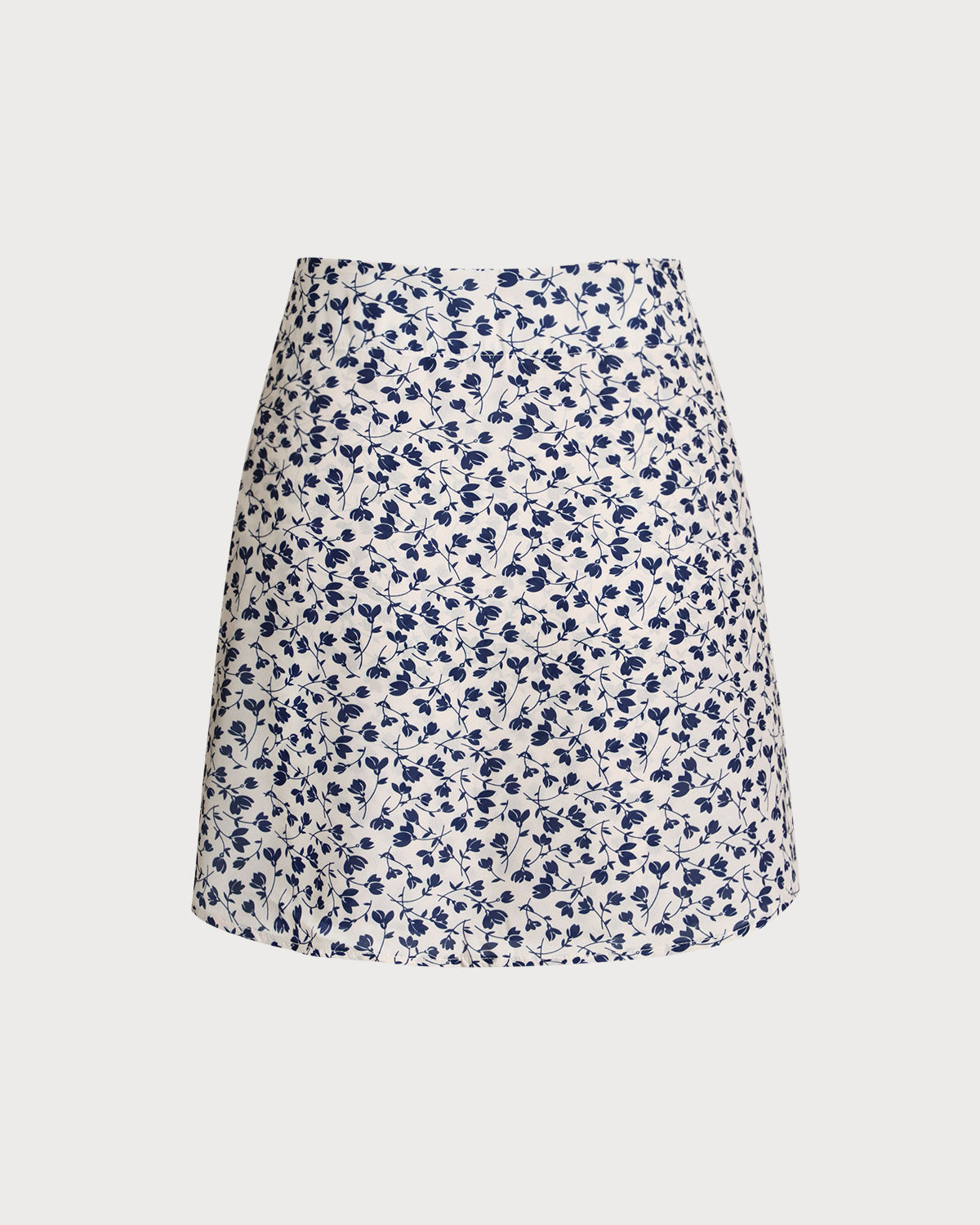 Belltoile™ Mavi Çiçekli Yüksek Bel Anvelop Mini Etek