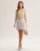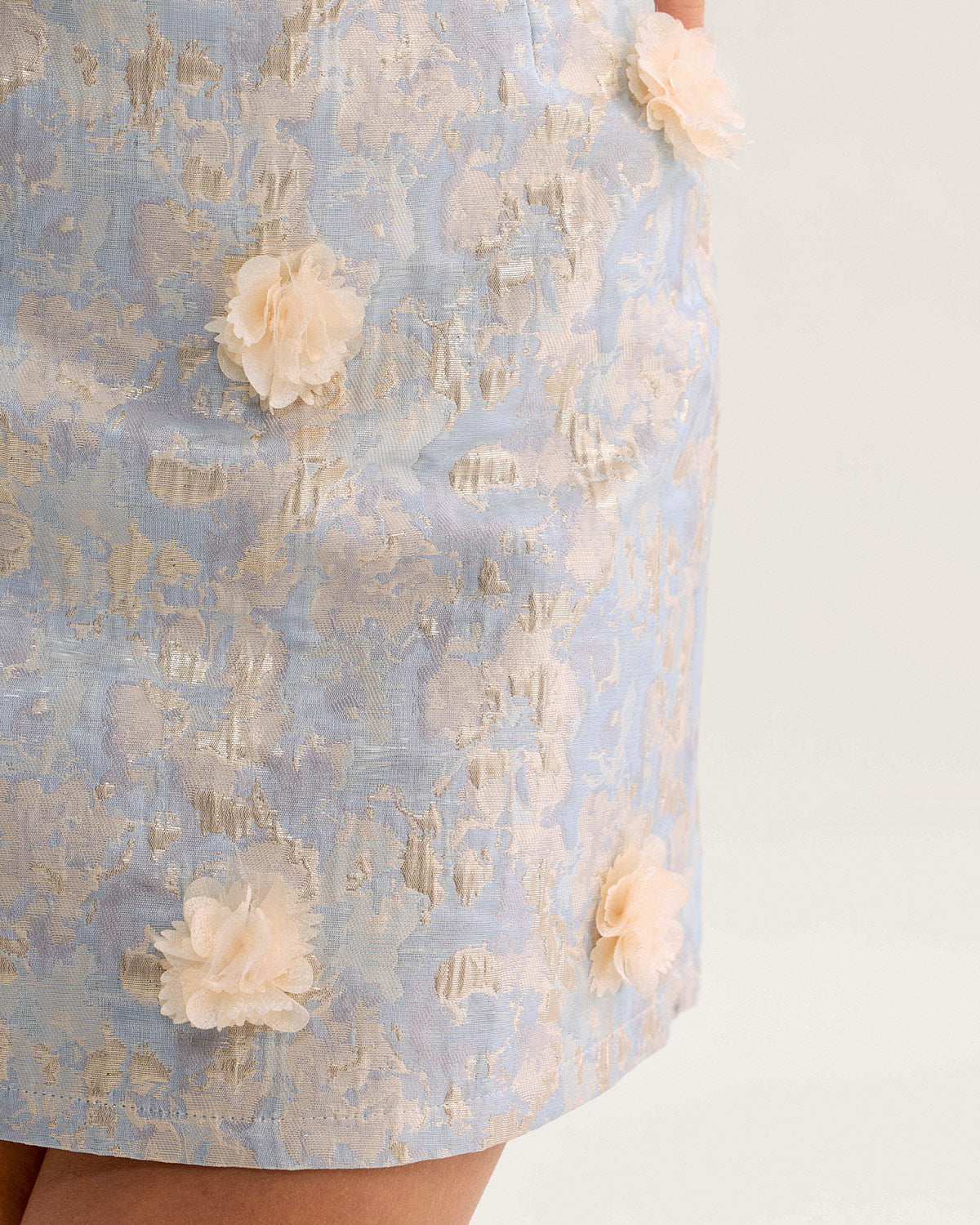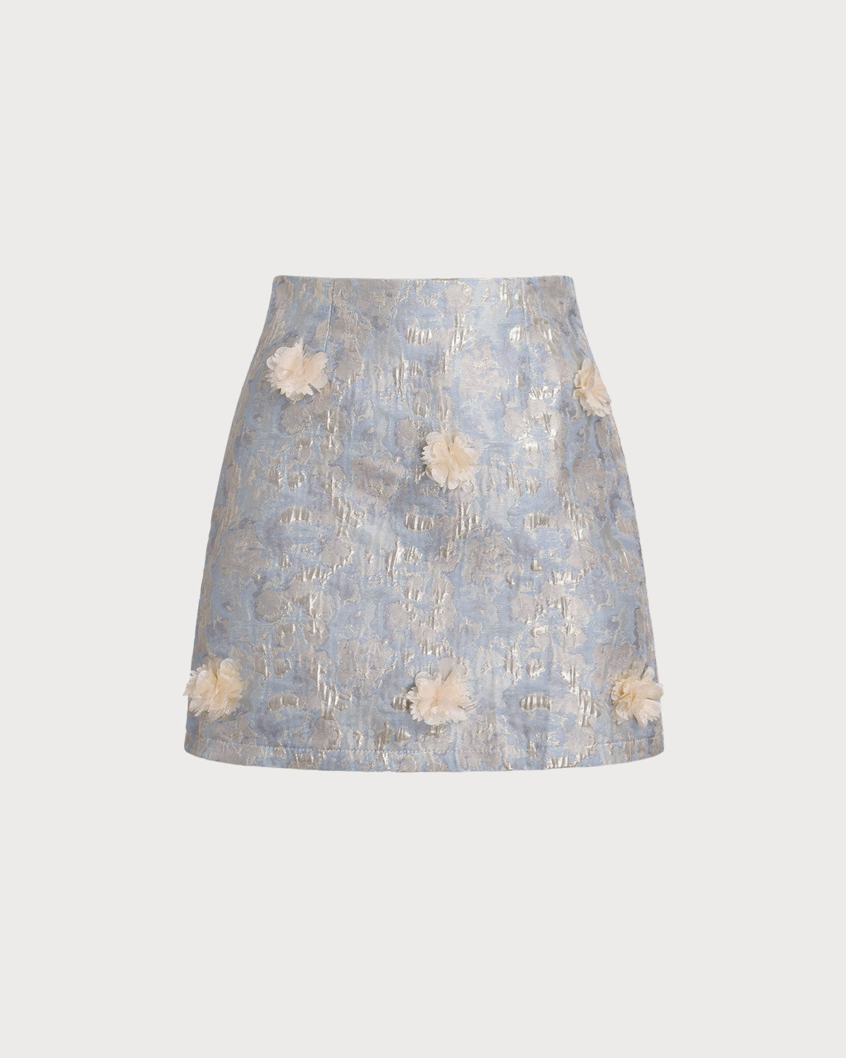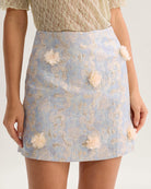 Belltoile™ Mavi Çiçek Dokulu A Kesim Mini Etek