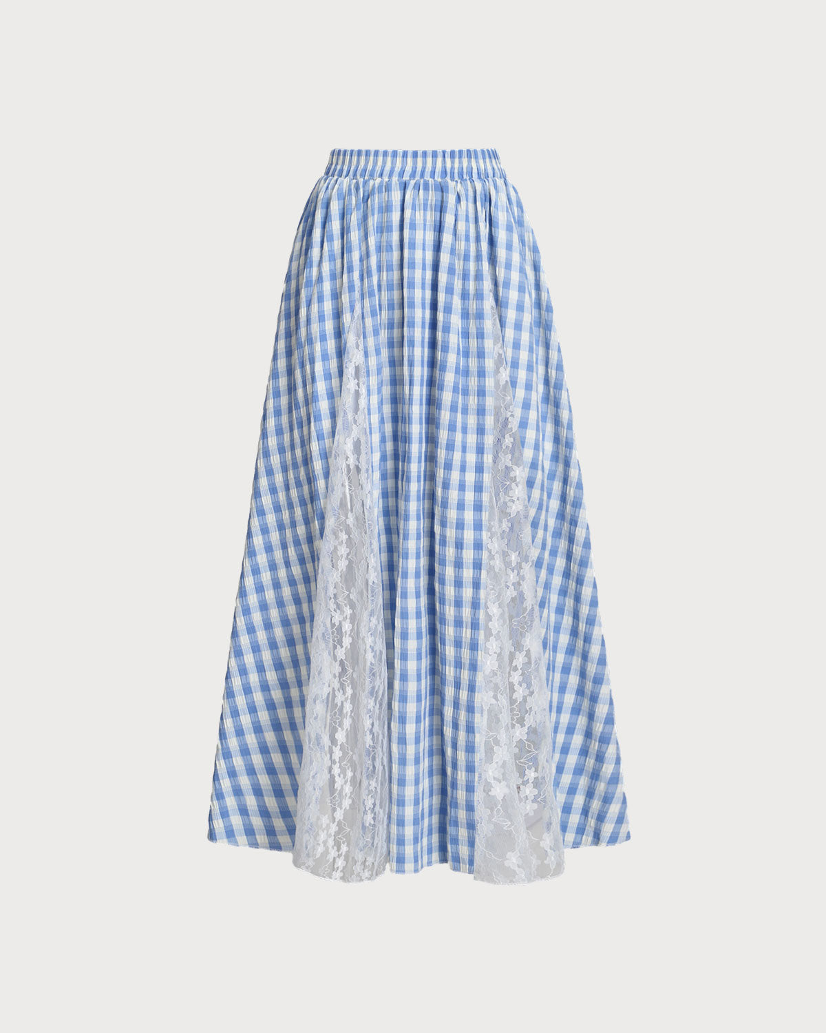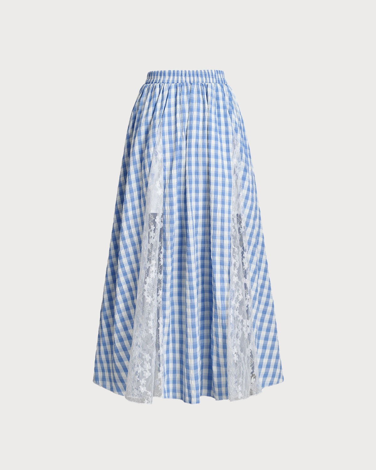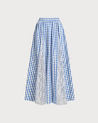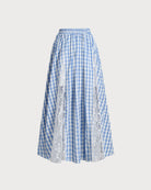 Belltoile™ Mavi Ekose Beli Lastikli Midi Etek