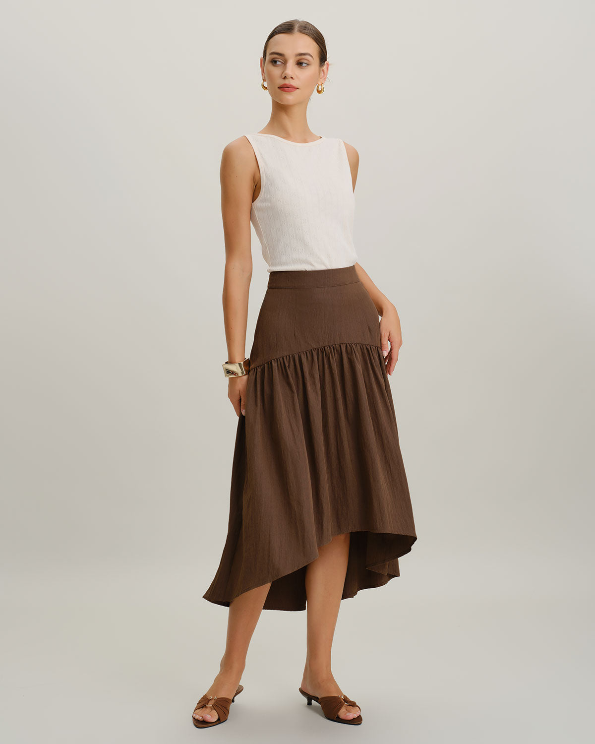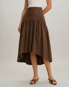 Kahverengi Yüksek Bel Yüksek-Alçak Midi Etek