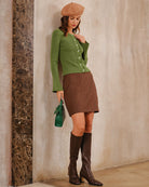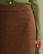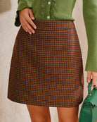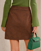 Kahverengi Ekose Doğal Bel Düz Mini Etek