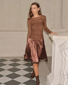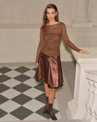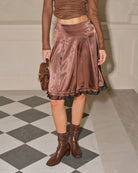 Kahve Kloş Diz Boyu Etek