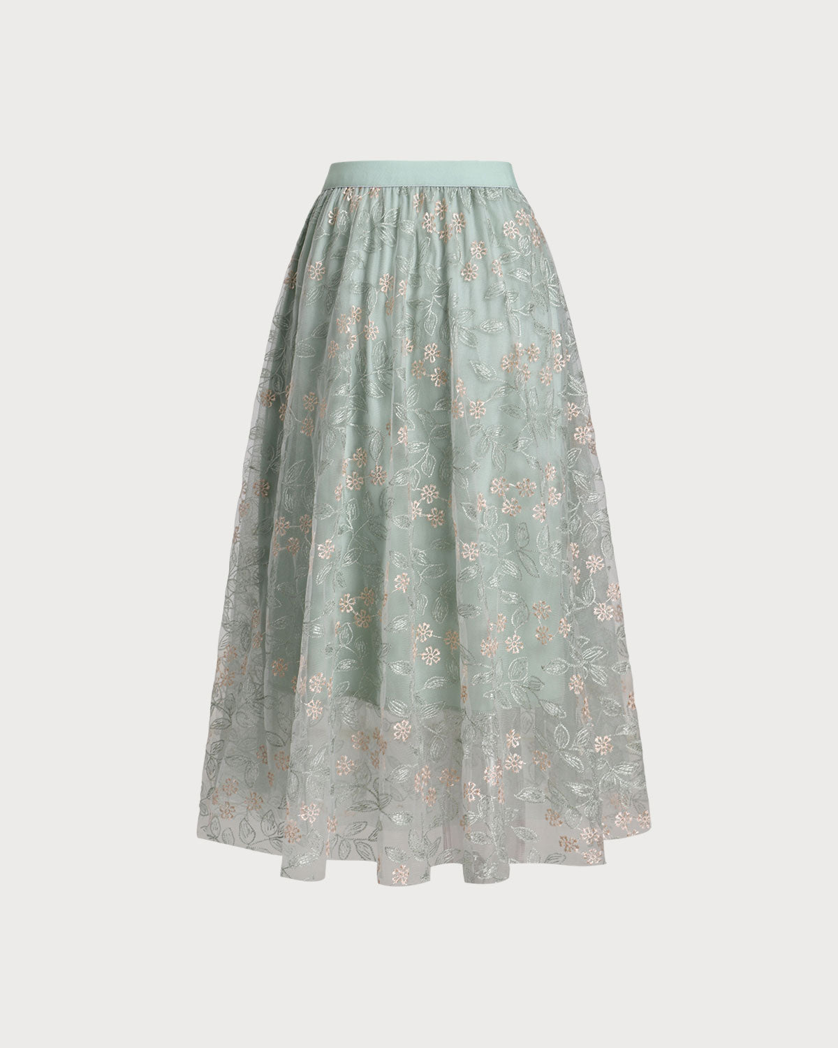 Belltoile Yeşil Beli Lastikli Midi Etek