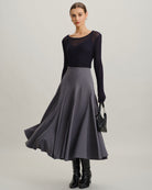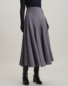 Gri Yüksek Bel Pileli Midi Etek