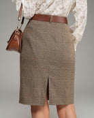 Haki Ekose Doğal Belli Kalem Etek