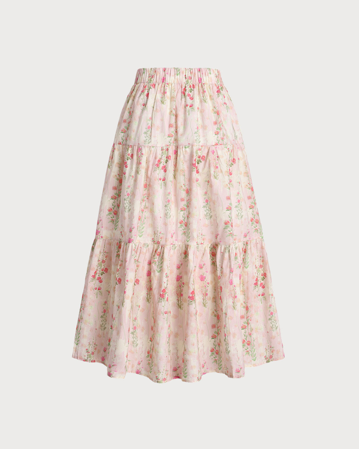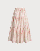 Belltoile™ Pembe Çiçekli Beli Lastikli A Kesim Midi Etek