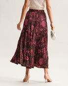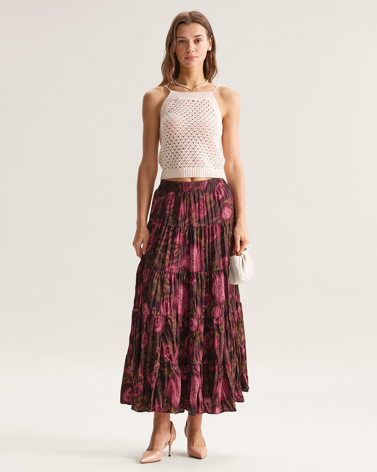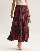 Belltoile™ Pembe Çiçekli Beli Pileli Midi Etek