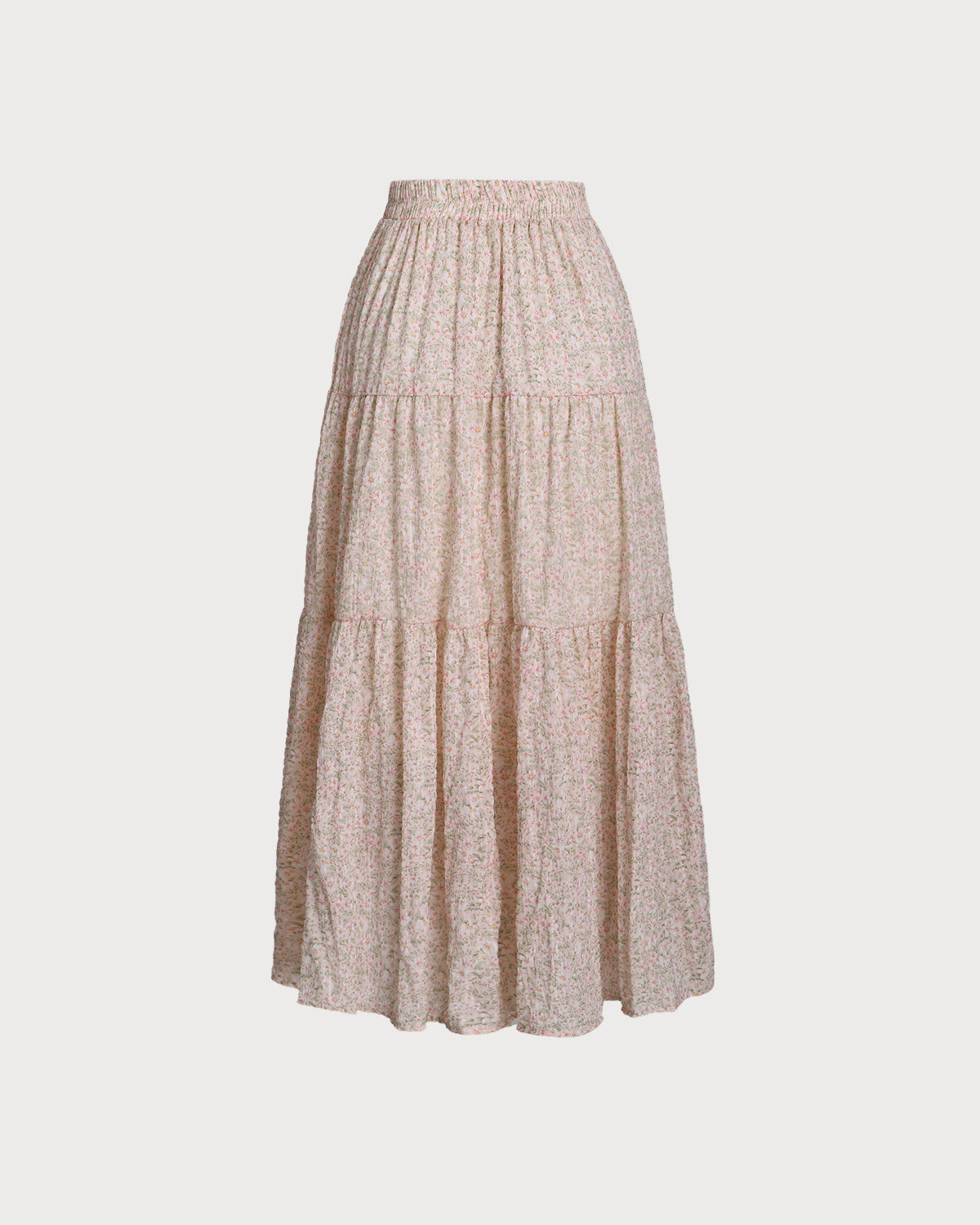 Belltoile™ Pembe Çiçekli Beli Pileli Midi Etek
