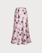 Belltoile™ Pembe Çiçekli Beli Lastikli Düz Midi Etek