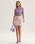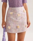 Belltoile™ Pembe Çiçek Dokulu A Kesim Mini Etek